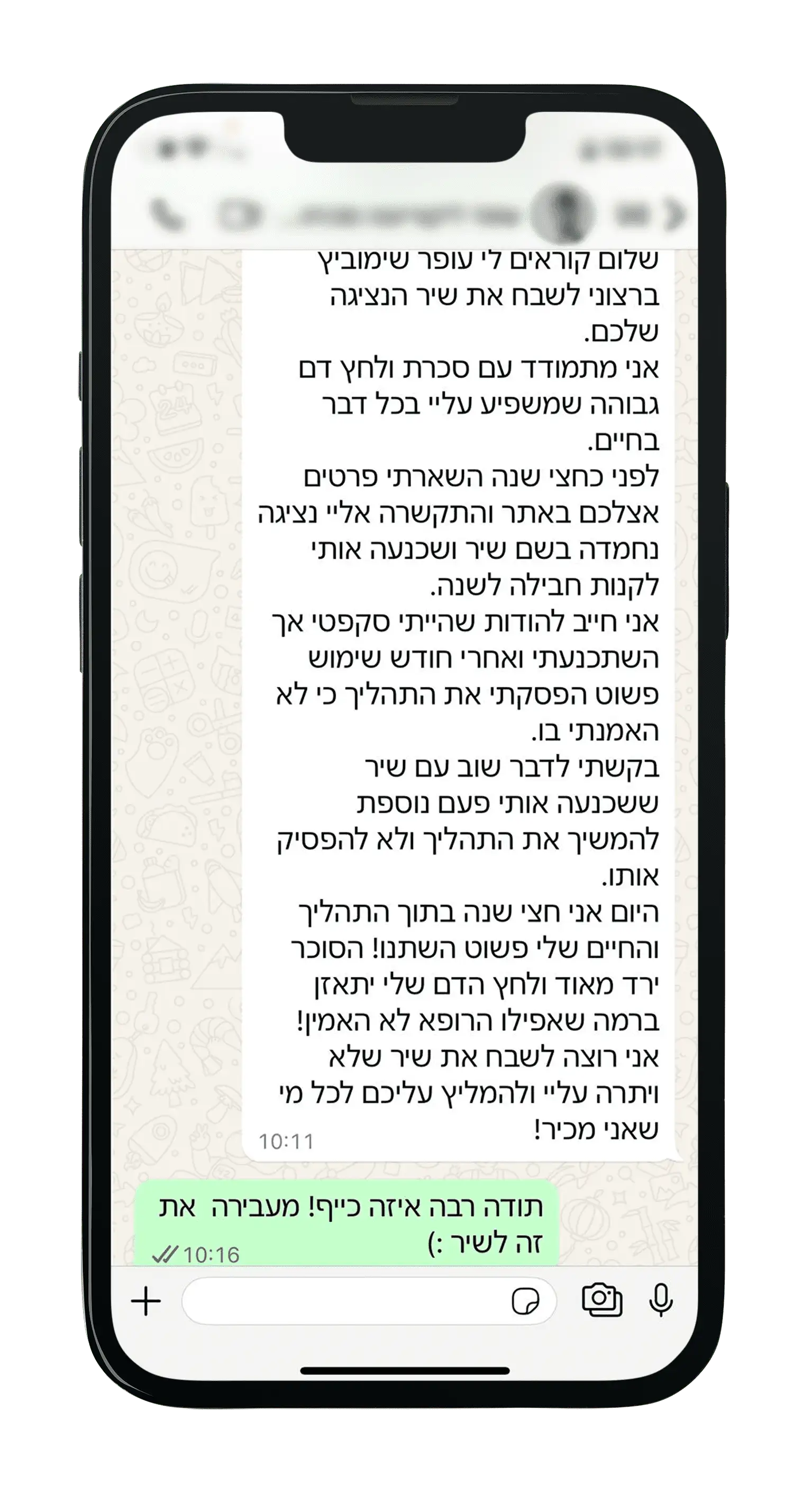 - "השינה שלי השתפרה פלאים." – איתי, 59, ירושלים